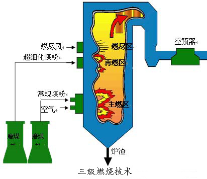 3、通過空氣和燃料分級送人鍋爐爐膛內(nèi),是主燃區(qū)形成還原性氣氛,在抑塵氮氧化物生成的同時,還可以還原已生成的氮氧化物,如三級燃燒技術(shù)等,脫硝效率達60%以上。